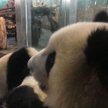 這周末又去看了么么兒,兒子很給力啊,外場就他面對觀眾一直表演吃播,大腦袋超級萌啊!哈哈,中午天氣熱,就收進屋內了,然后奶媽又進行了行為訓練,不得不說我么真是最聰明的小熊精!比其他小熊完成度要高哦,而且不發脾氣,全程配合奶媽,還會提前強答,奶媽一直摸他鼻子鼓勵他!旁邊一位帶孩子的爸爸說這只小熊好聰明啊,做得好,而且吃蘋果都是用舌頭卷不用牙咬的,然后還有位年紀有點大的阿姨一直在外面看他,還給我說我說她最喜歡萌蘭,專門來看他的!我們兒子厲害啦!粉絲群覆蓋各個年齡層啊!老干媽有時間再來看你啊,爭取在你回去前多看看你!