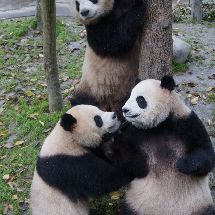 十一的時候陪父母去了都江堰玩,可惜當時還沒粉上胖胖,所以沒去熊貓谷,過完年一定要去一次!!!雖然很早就知道卡頭事件,但最近看到四歲生日那個原創歌曲瞬間愛上了,最近翻了好多視頻,胖胖真是從小萌到大,現在四歲多了有時依舊看著像小奶熊~o(〃'▽'〃)o希望奧總裁一直生活在四川,胖胖那么愛吃筍子,看外出打工的小熊們伙食都比不上川內吶,七小的大胖二胖思一小喬出去打工之后也瘦了,不希望你的大臉瘦下來,有空一定去都江堰看你,看挖煤三寶。話說淼淼親爹一直成迷么(到底是不是勇勇)?不是親兄妹的話真希望能成一對,看日常他兩打打鬧鬧感情真是超好。園潤是親妹沒跑了,不過看胖胖對妹妹真是溫柔,蘋果還會護下食,窩頭妹妹搶有時就給她了,三只能一起生活久一點就好了,看潤潤的刻板運動真是有些嚴重吶,兄妹一起會好一點吧,看一個視頻里潤潤撞門胖胖還去護著她把她拉回來,碰到電網了過去安撫她(???︿???) (圖來自網絡,出處見水印,侵刪)