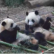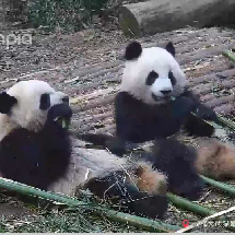 大美:鍋,今天的竹子好美味,你說是不是呀?芝麻:嗯嗯嗯,好好吃~~小蘭子,你也來一起吃吧~