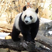 Giant panda Bei Bei walks to the very front of Deadfall. New territory for the nineteen month old cub.