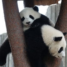 姐妹倆爭(zhēng)樹(shù)杈,怕下去被媽媽rua嗎?O(∩_∩)O哈哈~