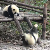 今天嬌奧和小黑黑又出來放風咯嬌奧小朋友上木架還是不太利索,但是比上一次速度快很多了,而且今天會爬樹了!進步很大哦,雖然很艱難才爬了一截,也算是質的飛躍了,希望下次能爬高高~~小家伙很喜歡玩水,又自己泡了幾次澡然后滾成了小泥猴。今天活躍了一整天,一直沒有睡覺,有胖友說他“是真舍不得睡覺”,真是直戳我心啊……剛出來不久,兩小熊懟了一陣,可能是“戰神”包袱過于沉重,以致于小黑黑壓力過大,屢次被嬌奧懟下木架,但是呢,小黑黑同學用實際行動展示了他的戰神素養——屢敗屢戰、不氣不餒、永不言敗,勝負不重要,這種精神才是最可貴的~(此處應有掌聲^_^)。之后,小黑黑又開啟高冷掛樹模式大半天希望所有的滾滾都能健健康康,快快樂樂的蹦跶,能吃能睡能長。