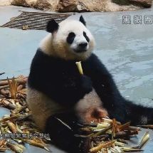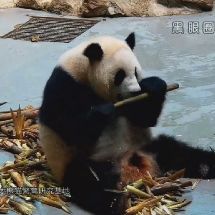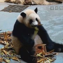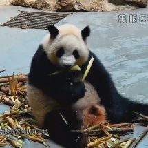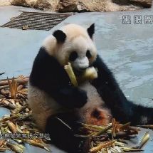 #囡囡小日記#昨天囡難得正面吃播了相當長一段時間,截個圖留念~請留意重點:大肚肚,[劃掉]兇猛的[劃掉]撕咬筍皮,吃到迷醉的表情,以及頭箍~2333333我就是愛球囡啊!