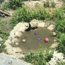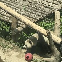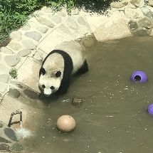 奧運館里,萌媽的小紅椅子還在,可惜萌嗒嗒沒有出現。天氣很熱,“葫蘆”很乖,在外場活動,表演翻跟斗,一圈一圈的繞走,熊貓館的又一個熱點!