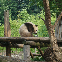 冰冰妹兒早早就起來上班咯,煤球兒果果還在賴床。保安說:青青他最懶咯。旅游團都順左手去看寶寶了,錯過了煤炭家。我喊了聲冰冰,她還回頭看看。青青的頭,真的,好圓!