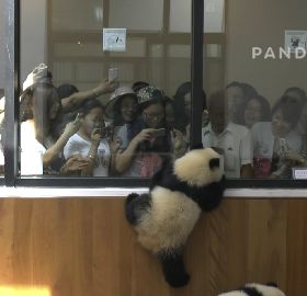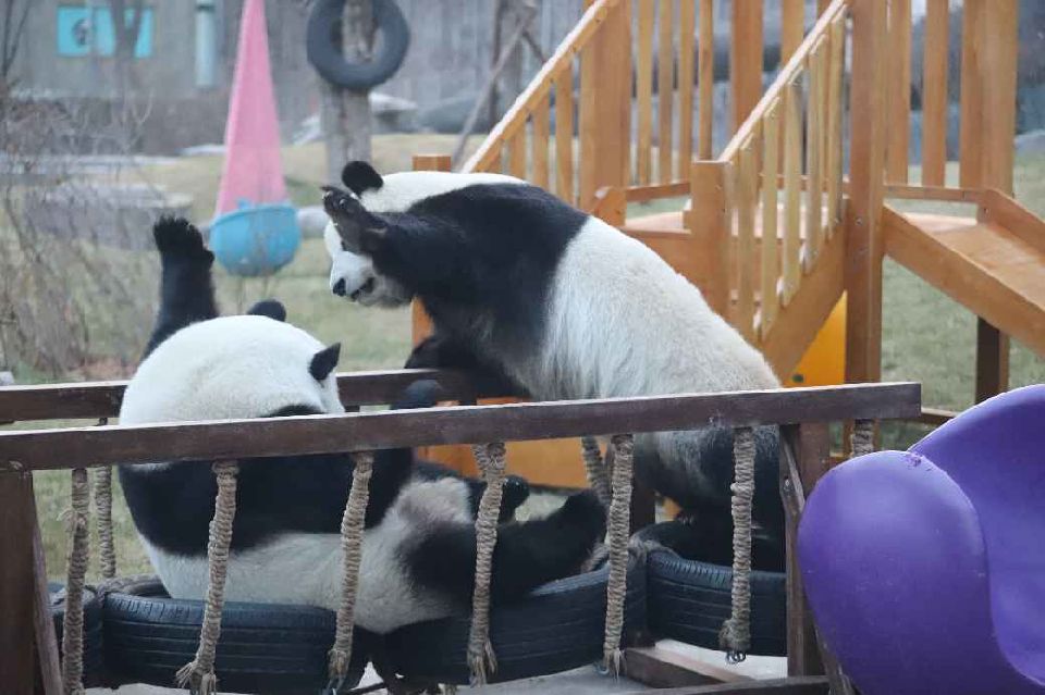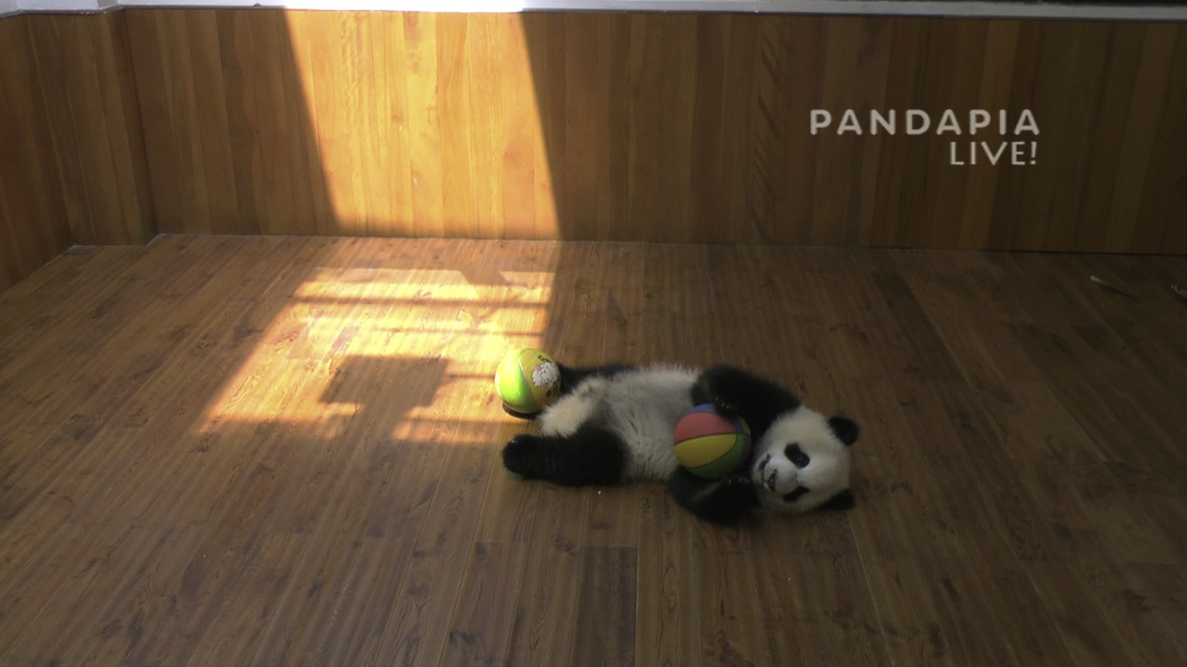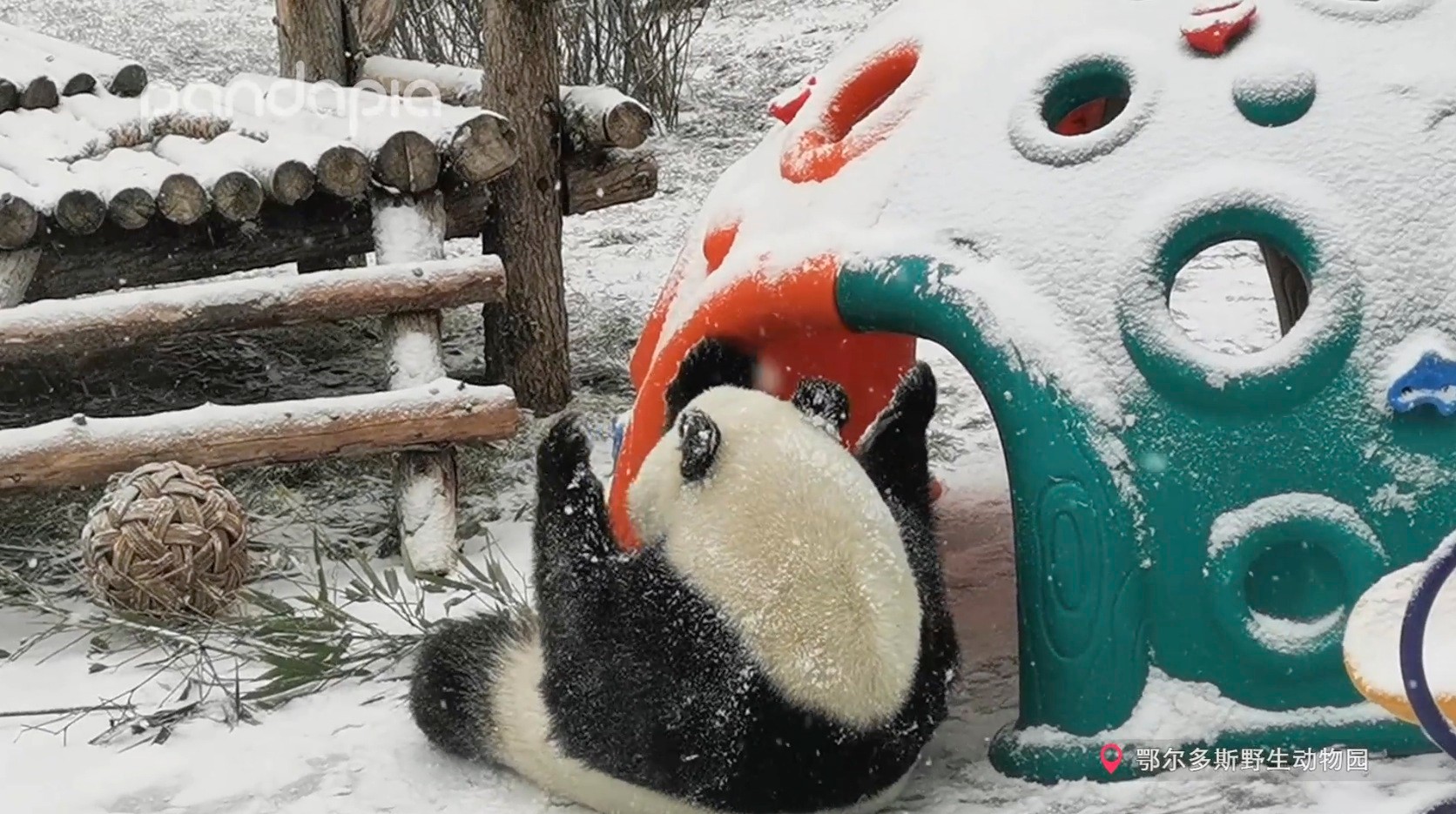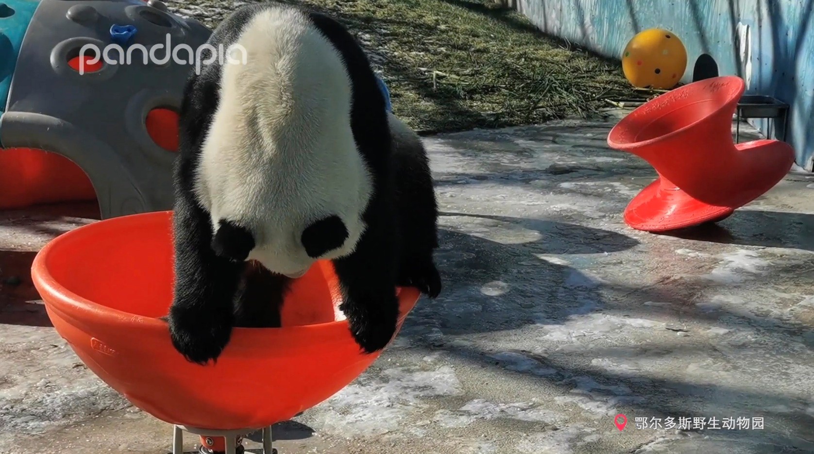 七喜吃了竹筍后,開始玩起了皮球