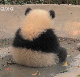 漫天的銀杏黃了,一片片落葉掉下來,黑白團子就擁有了限定款的黃色幕布,這樣是不是顯得熊崽不黃啦?