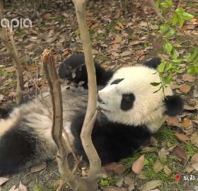 這熊孩子,毀樹被逮現行了吧