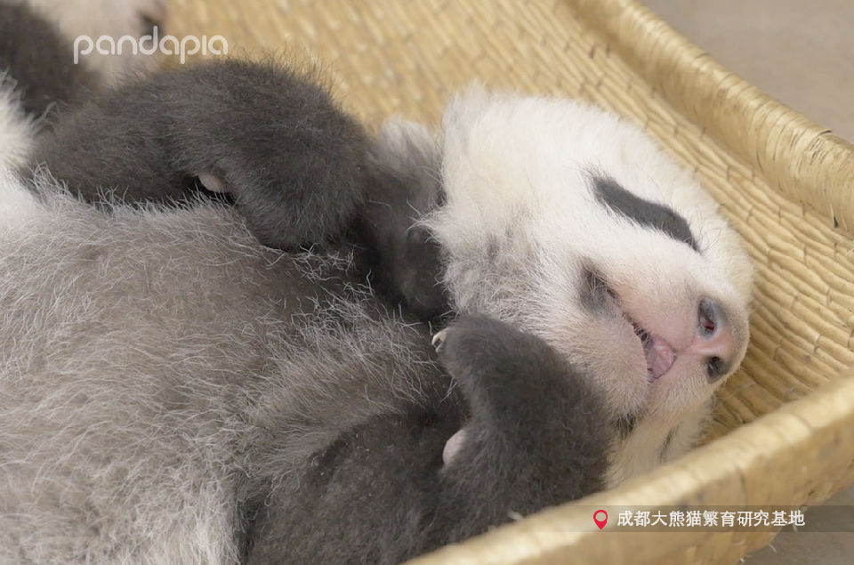 熊貓嬰兒在媽咪的“熊皮毛毯”上喝奶