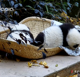 熊貓嬰兒在媽咪的“熊皮毛毯”上喝奶