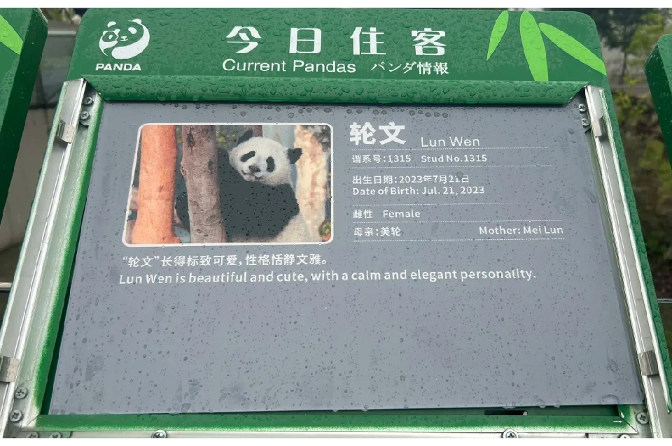 美輪于2023年7月21日生下龍鳳胎,大崽輪文,雌性,譜系號1315,二崽輪武,雄性,譜系號1316