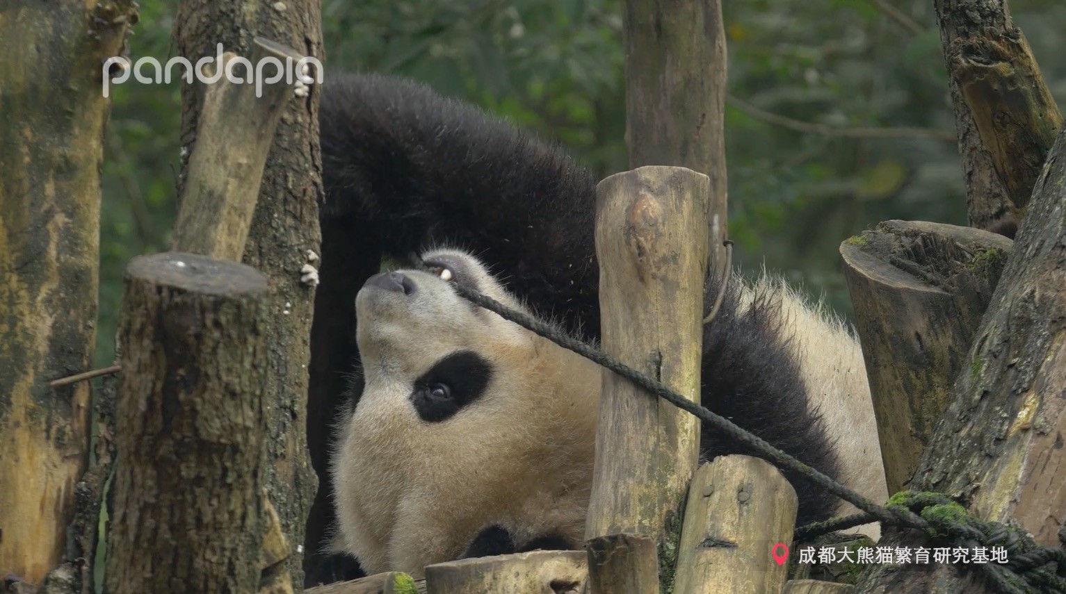 大熊貓為何蠢萌?我要爬過(guò)這個(gè)樹(shù)根,哎呀我滑倒了( ?ˊ????)???