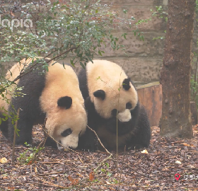 晶晶亮與珍喜打鬧