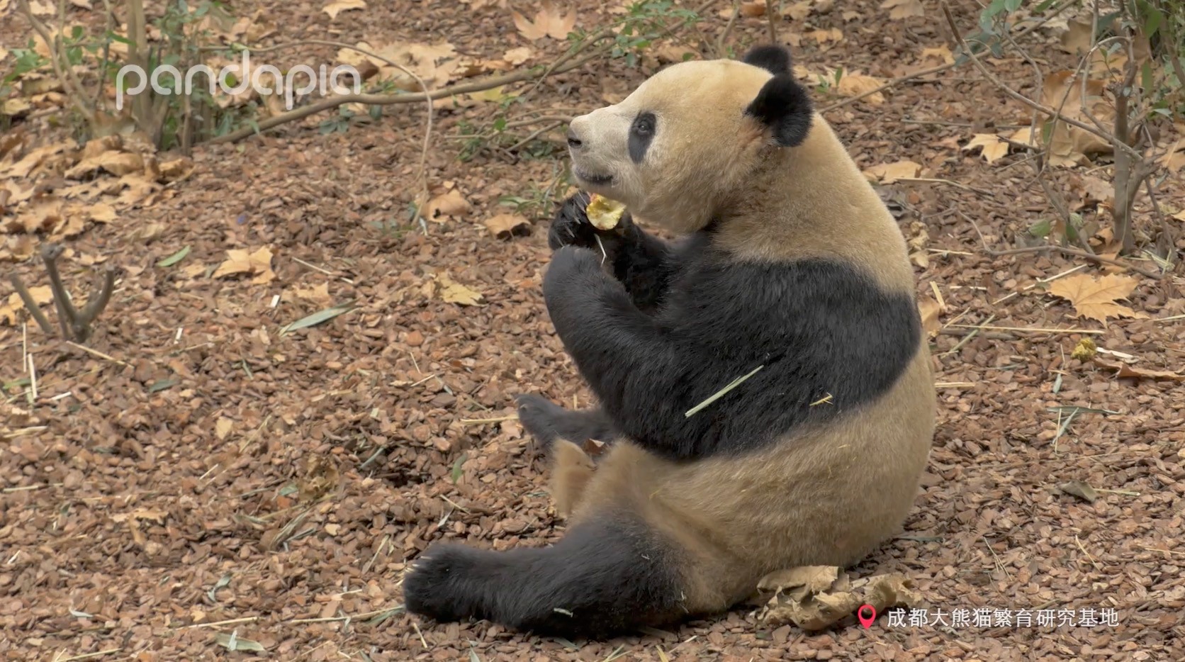 漫天的銀杏黃了,一片片落葉掉下來,黑白團子就擁有了限定款的黃色幕布,這樣是不是顯得熊崽不黃啦?