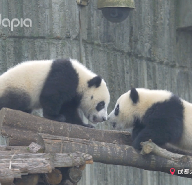 金雙在木架上玩