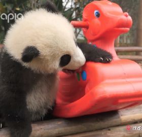 第一次見搖搖馬的熊反應居然是這樣