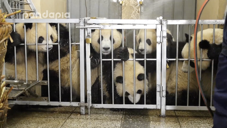 成就雙好回四川前再來看一次~九點(diǎn)半剛到就看到成就就在泡澡~而雙好……我也不知道雙好在干什么 然后過了一會(huì)兒兩只就開始趴門口等竹子啦 吃完竹子后成就在面壁思過(???)雙好趴著曬太陽(yáng)